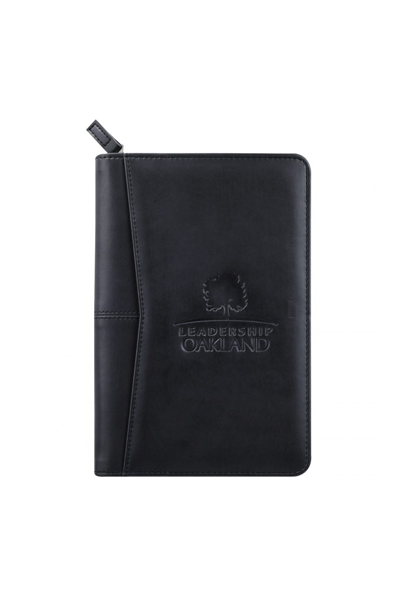 The Pedova™ Jr. Zippered Padfolio with FSC® Mix Paper is constructed from quality UltraHyde materials and has a zippered closure to keep your belongings secure. It's packed with organizational features ideal for school or work, including three business card holders, two USB flash drive holders, a mesh ID window, a gusseted documented pocket, a gusseted elastic media pocket, and a convenient pen loop. The Pedova™ Jr. also includes a refillable 8" H x 5" W FSC® Mix writing pad, with refills available to order separately (see 9091-06RF).
