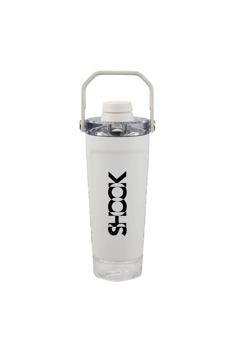 Introducing the Activate Shaker Bottle. Made to energize. Designed to fuel your best self. Infuse your water or add protein. Fill. Shake. Drink. The 20-ounce Activate Shaker Bottle keeps your drink cold for hours, thanks to double-wall vacuum insulation. A rounded interior makes mixing and cleaning easy, while the fast flow spout provides a better sip. The inside is stamped with measurement lines and includes a removable strainer. The base storage container and the soft, easy-grip handle are great for on the go. And with a leakproof Tritan lid, it’s ready to toss in your bag. Hand wash.