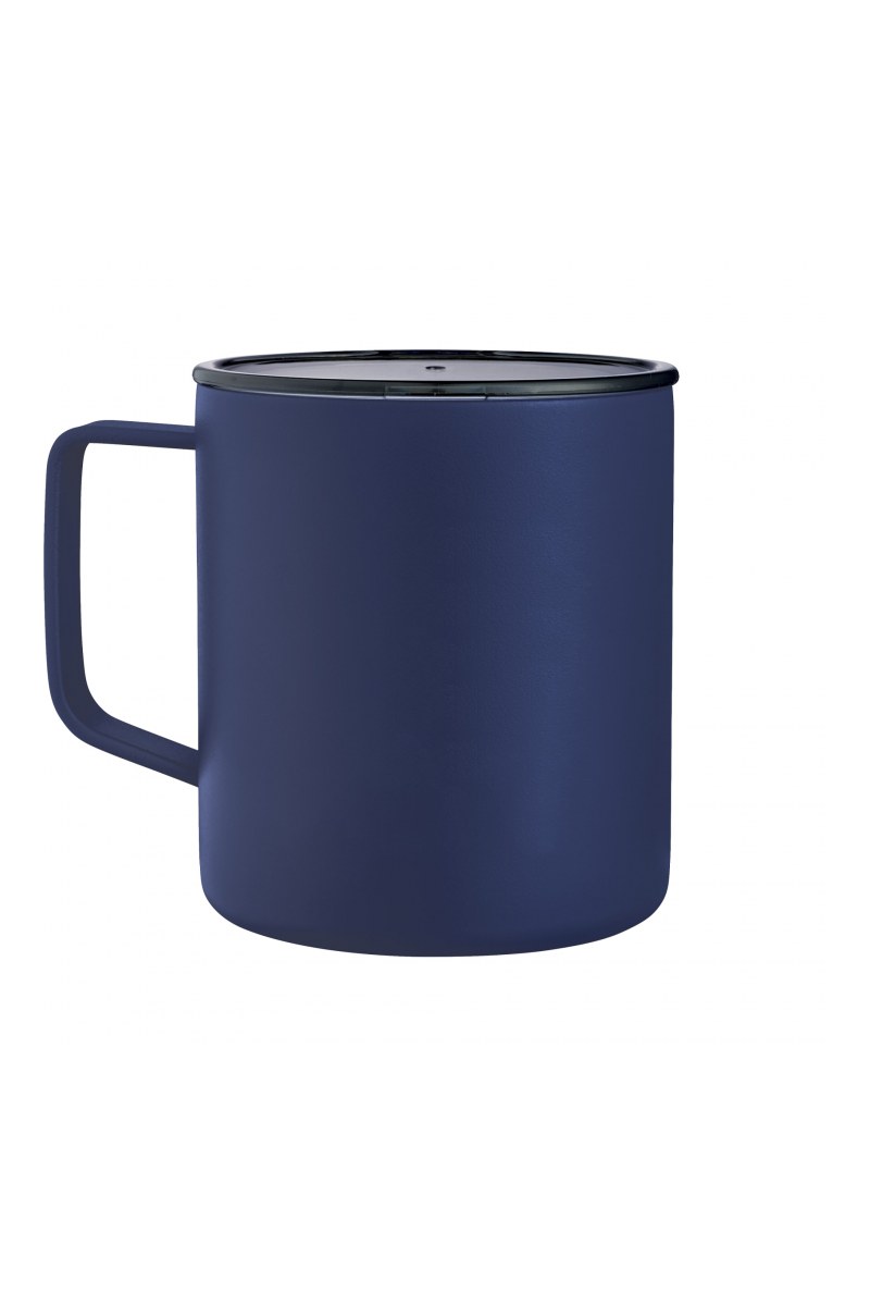 Warm up the campfire ambiance while drinking your tea or coffee with this classic camp cup. Durable, double-wall stainless steel vacuum construction with copper insulation, which allows your beverage to stay cold for 24 hours and hot for at least 6 hours. The construction also prevents condensation on the outside of the piece. On-trend, durable powder coating. 14oz.