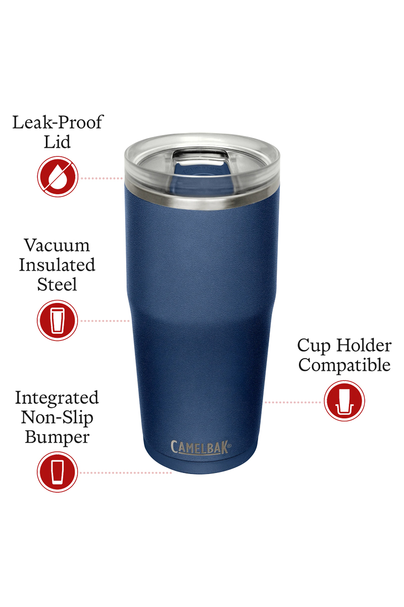 Elevate the everyday with the Thrive™ Leak-Proof Tumbler 20 oz. Designed with an integrated non-slip bumper and a leak-proof lid, you can travel easier than ever before. Just toss it on the tailgate if the swell picks up and you need to paddle out in a hurry, or stick it beside the campfire without worrying about one misplaced step spilling your whole drink. The vacuum insulated steel construction will make it your go-to for refueling on roadtrips, keep your cocktails ice-cold, and ensure you stay hydrated all day long. It's the ultimate way to re-imagine your daily routine. Handwash only
