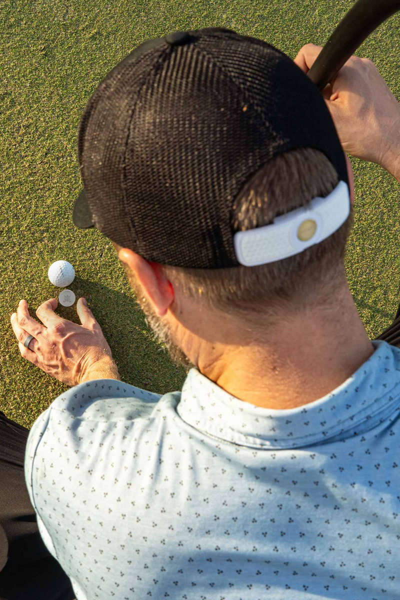 An all-weather accessory featuring our patented ball marker cradle conveniently and easily slides onto any adjustable hat strap.