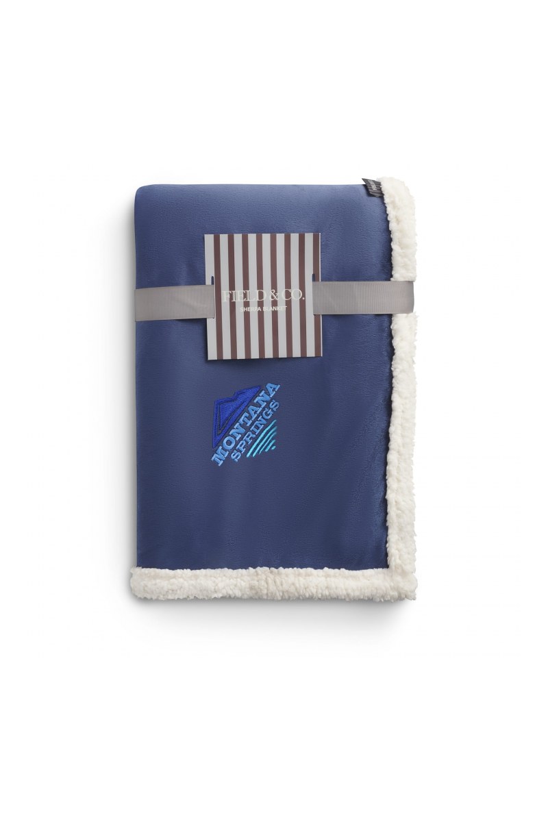The Field & Co.® Sherpa Blanket features a classic look with timeless style. Super soft and cozy, a perfect luxurious comfort. Combines soft velour and Sherpa backing with Field & Co.® vintage branding elements and details. Blanket measures 50"x60"x1" unfolded and 16"x11.5"x3.5" folded. Free run charges for embroidery up to 10,000 stitches. This blanket is spot clean only.