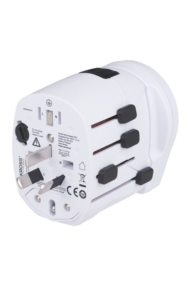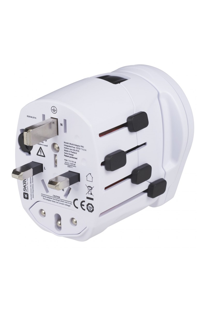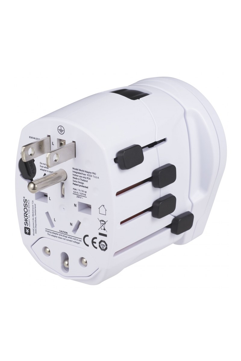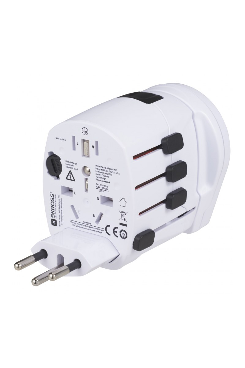 Switzerland based SKROSSĀ® is the leading manufacturer of premium travel adapters and innovative charging solutions for users of mobile devices around the world. The World Adapter PRO World & USB is the most powerful travel adapter in the world. The compact 3-pole travel plug with an integrated USB charger works in over 150 countries. Ideal for connecting even earthed devices such as laptops and hairdryers anywhere in the world and charging USB devices simultaneously. Input voltage adapter: 100 V - 250 V. Max load: 10 A. USB output: 5 V / 2100 mA. Charge notebooks and smartphones, like iPhone, Blackberry and Android based phones, and other devices worldwide.